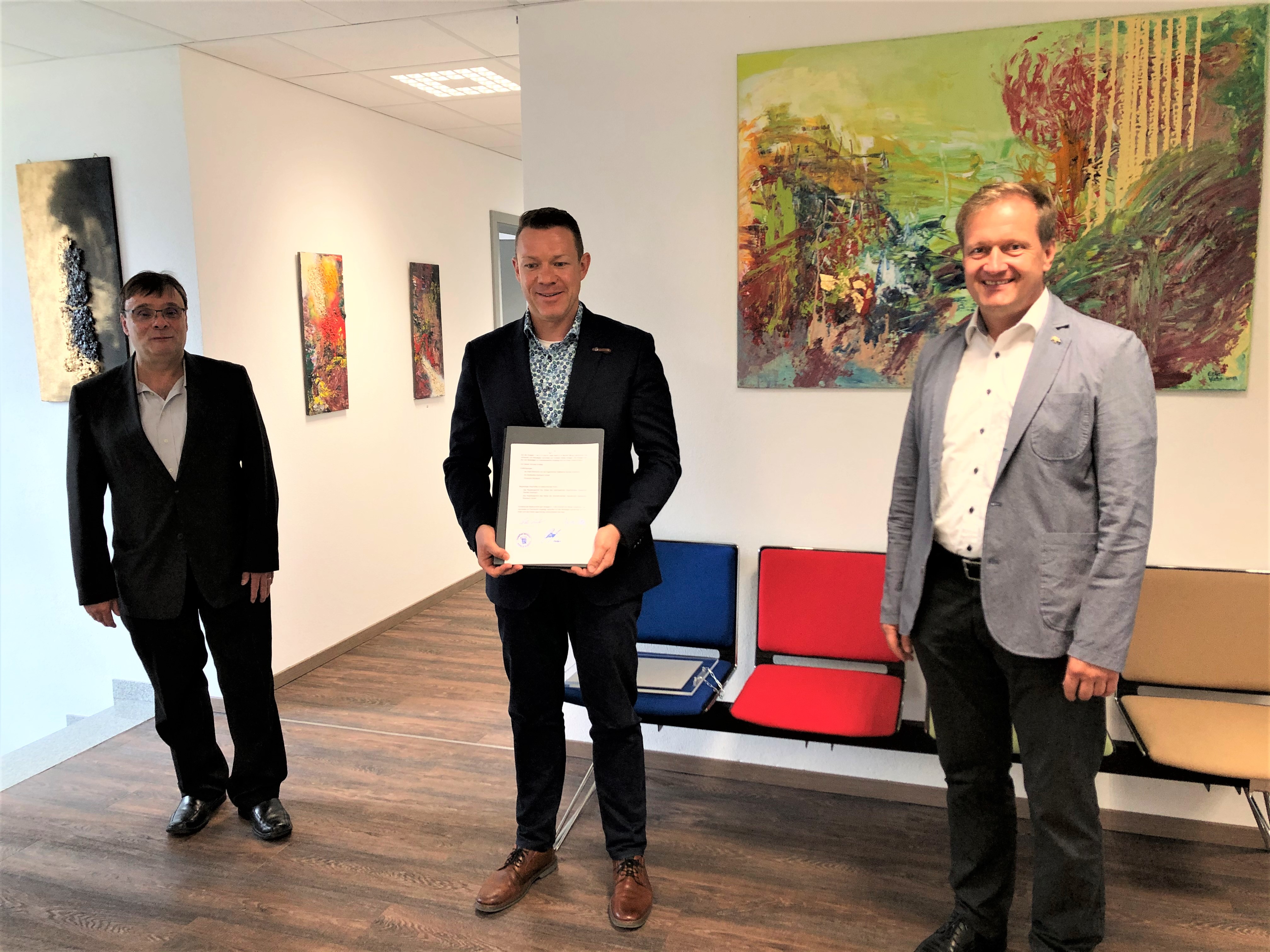 Am vergangenen Montag wurde der Ausgliederungs- und Übernahmevertrag zwischen dem Eigenbetrieb Stadtwerke Eberbach und der e.con GmbH in Anwesenheit von Bürgermeister Peter Reichert und Werkleiter Günter Haag von Notar Strauß aus Mosbach notariell beurkundet.