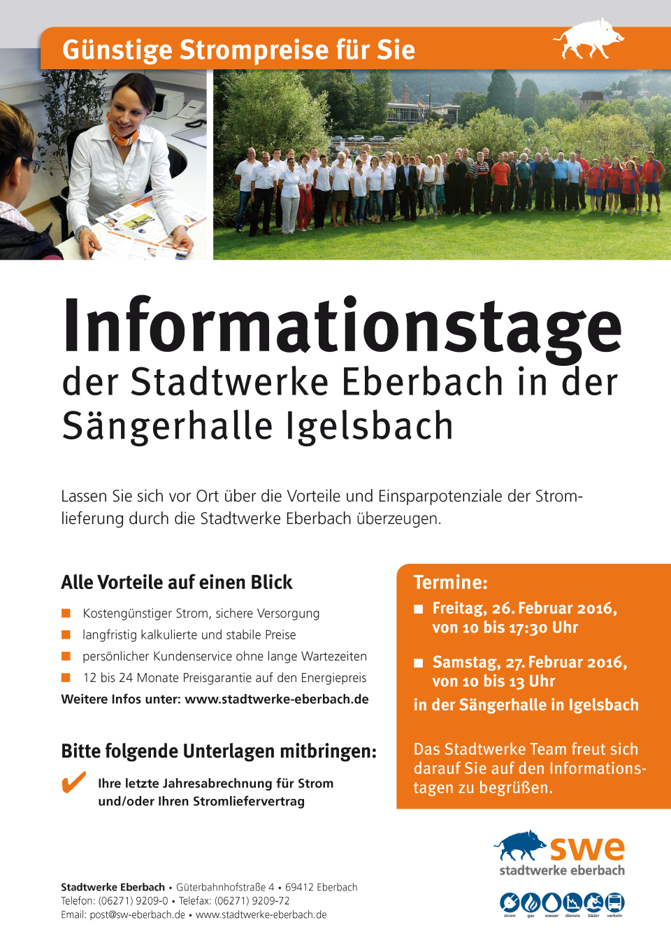 Bitte bringen Sie Ihre letzte Jahresabrechnung für Strom und/oder Ihren Stromlieferungsvertrag mit.