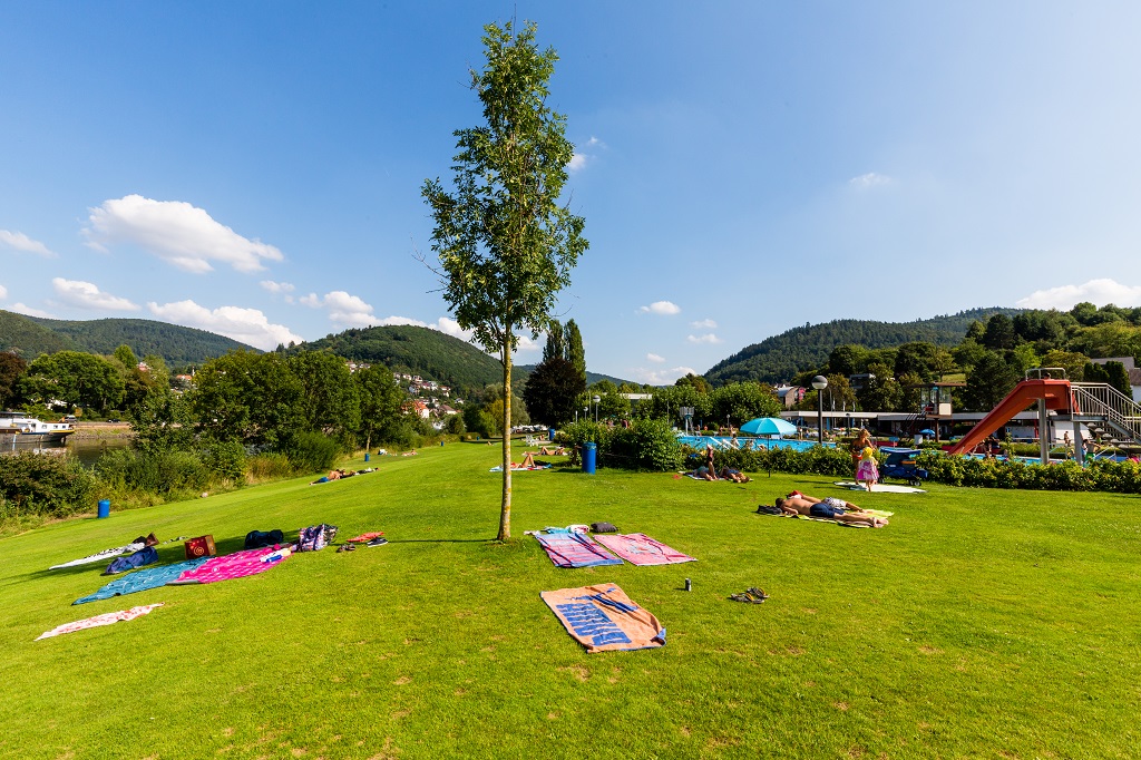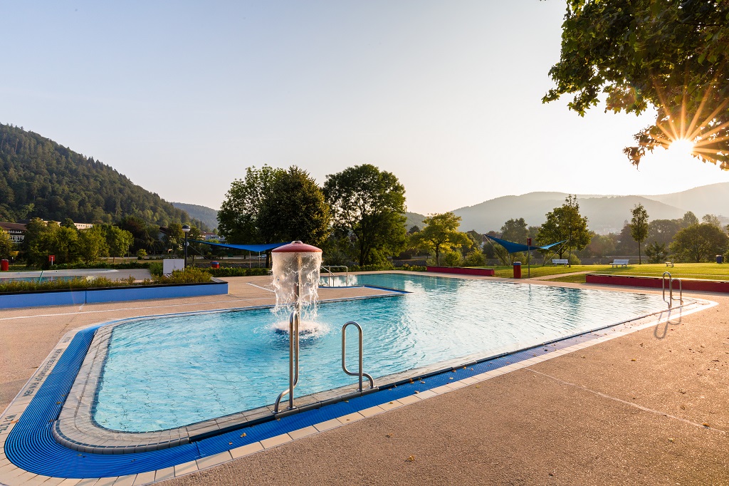 Das Freibad gehört mit seinen insgesamt vier beheizten Becken (50 m Becken, 3 Kinderbecken), zwei Sprungbrettern (3 m und 1 m), Wasserrutsche, Tischtennisplatten, Schachfeld, Spiel-, Volleyball-, Basketball- und Bolzplatz sowie seinem wunderschönen Blick auf die Stauferstadt Eberbach zu den schönsten Bädern im gesamten Neckartal.